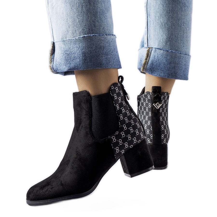Details: Schwarze Stiefel mit niedrigem Absatz, Monte aus Öko-Wildleder