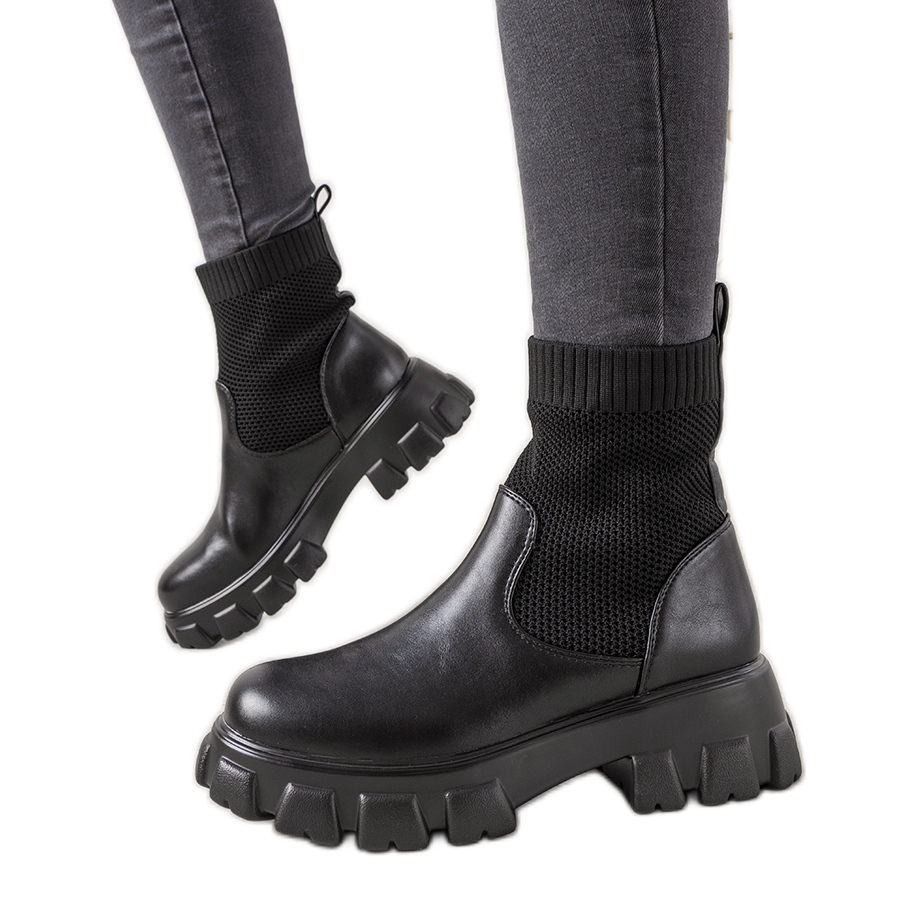 Details: Schwarze Stiefel mit Sock-Obermaterial von Slainie
