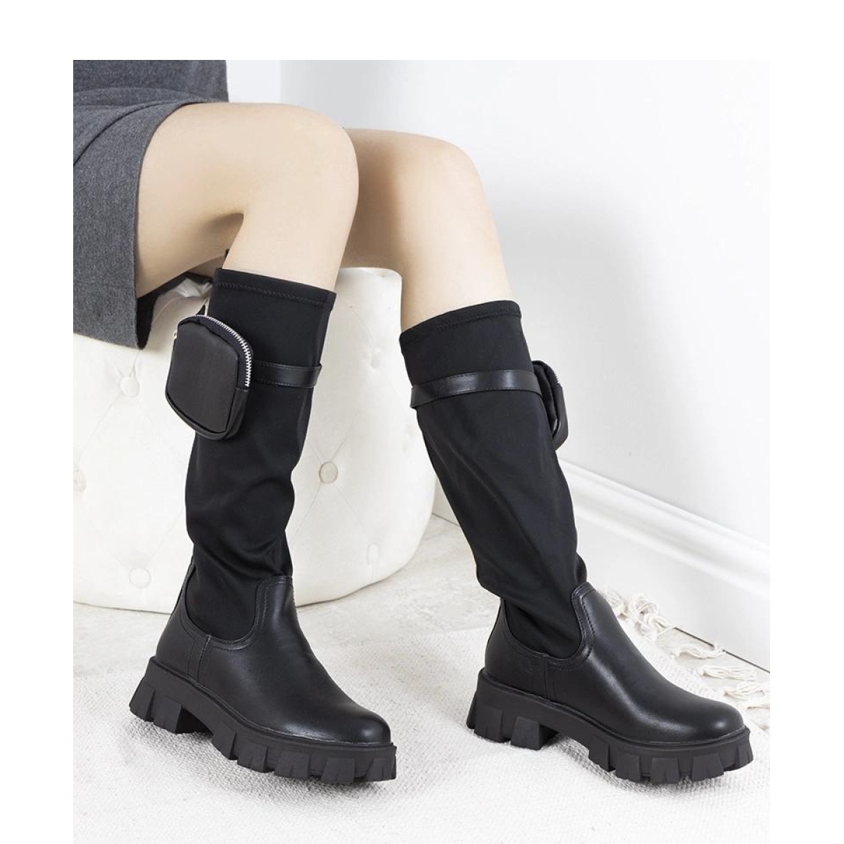 Eine der interessantesten Details dieser Schuhe ist der dekorative Beutel am Gürtel, der zusätzlichen Stil und Originalität einführt. Der Beutel kann sowohl mit als auch ohne Zugabe getragen werden, sodass Sie die Schuhe problemlos an verschiedene Stile und Stimmungen anpassen können. Jole -Stiefel sind eine gute Wahl für diejenigen, die über die neuesten Trends auf dem Laufenden sein möchten und gleichzeitig Komfort und Praktikabilität bewerten möchten.