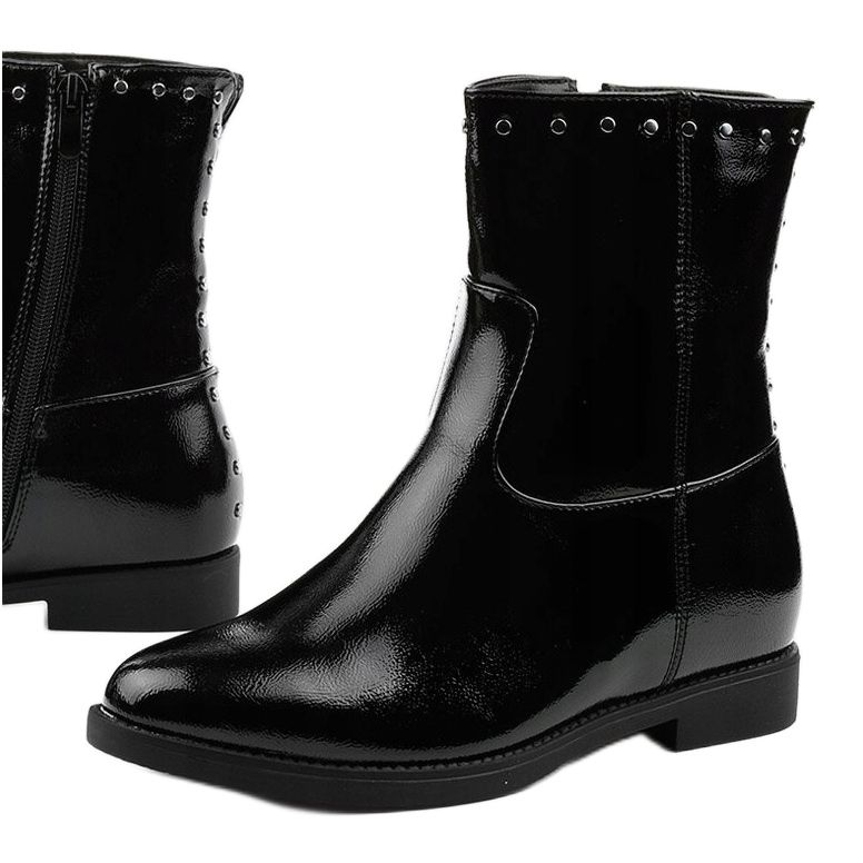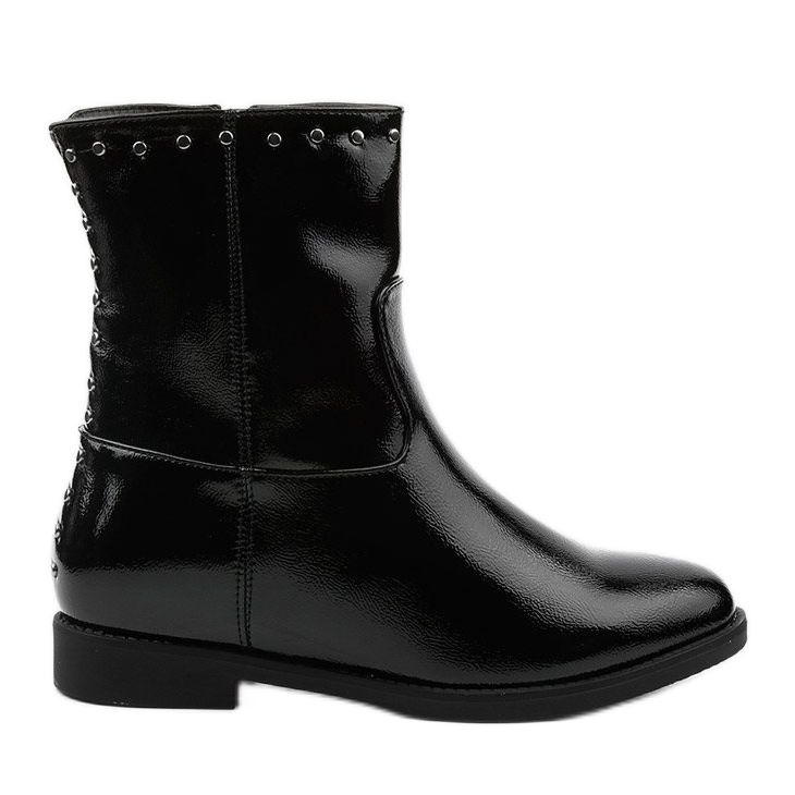Die aus hochwertigem ökologischem Leder gefertigten Stiefel zeichnen sich durch ein Obermaterial aus Lackleder aus, das ihnen einen modernen Charakter verleiht. Die Verzierung in Form eines Streifens aus Lithos und Strasssteinen macht diese Schuhe zu einem Blickfang und zu einer perfekten Wahl für Frauen, die Wert auf modisches Design legen.