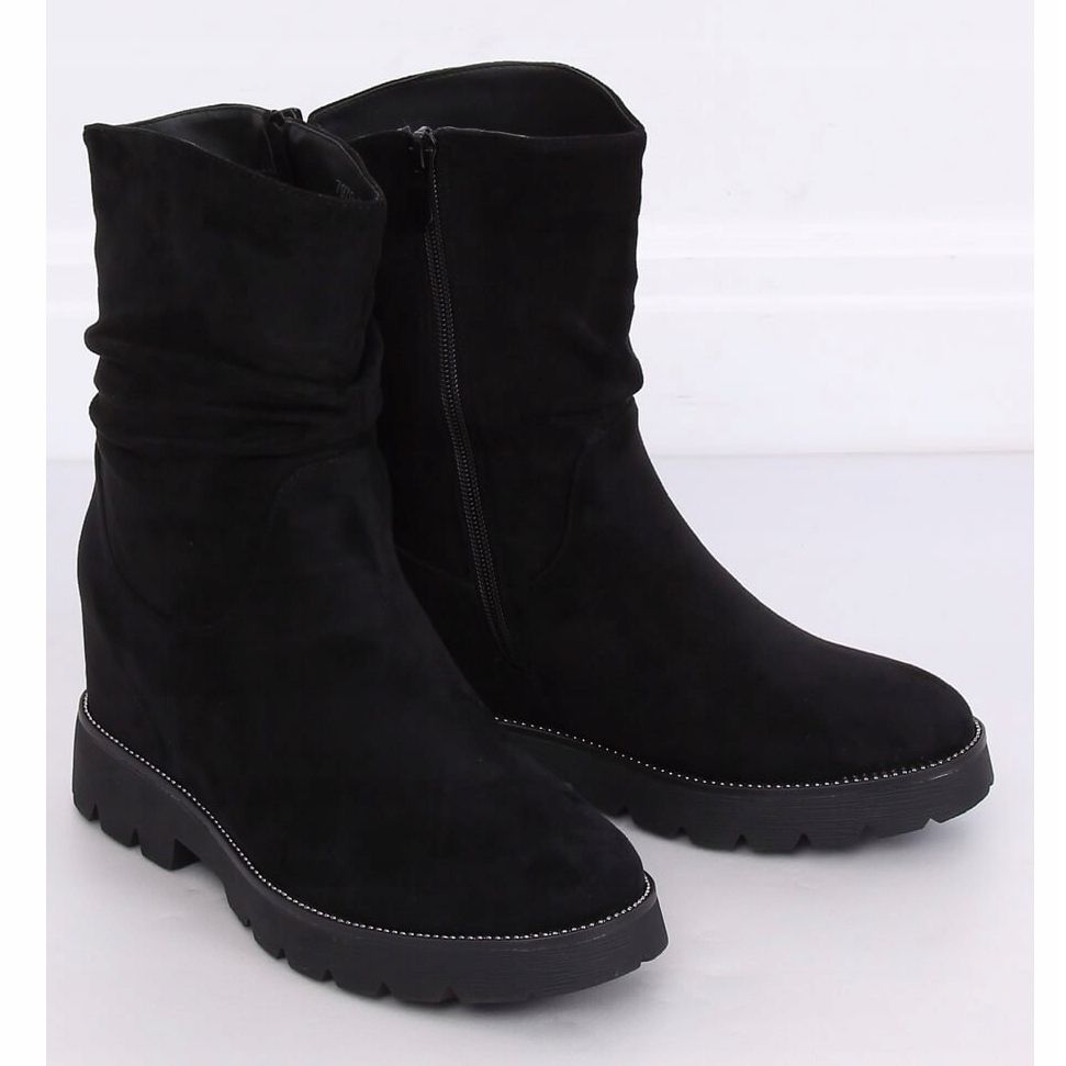 Inna marka Schwarze Stiefel mit verstecktem Keilabsatz 7978-KA Black