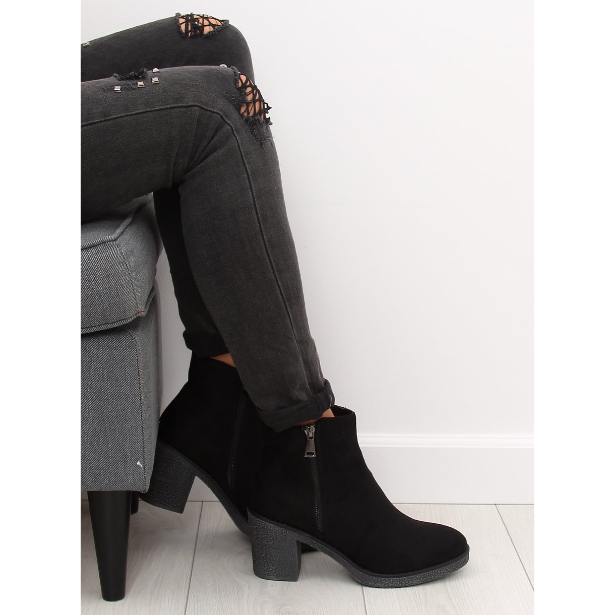 Schwarze Stiefeletten mit weitem Absatz 2013 Black sind die perfekte Wahl für Frauen, die Wert auf klassischen Stil in Kombination mit modernem Stil legen. Diese einzigartigen Stiefel aus zartem ökologischem Wildleder begeistern durch ihre schlichte und elegante Linienführung. Der dekorative Reißverschluss verleiht Charakter und Stil und macht sie zu einem perfekten Element Ihrer Alltagsgarderobe.