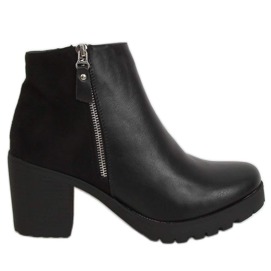 Inna marka Schwarze Stiefel mit weiten Absätzen J802 Black