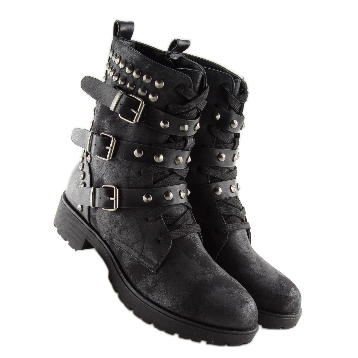 Wir präsentieren die schwarzen Stiefel FC-H123 schwarz – perfekt für Frauen, die nicht nur Wert auf Stil, sondern auch auf Komfort und Funktionalität legen. Diese äußerst modischen Worker-Modelle im Military-Stil sind mit Schnallen und zahlreichen Nieten verziert und erhalten durch die originellen Abnutzungserscheinungen einen einzigartigen Charakter. Dank ihnen werden Sie sich mit Sicherheit von der Masse abheben!