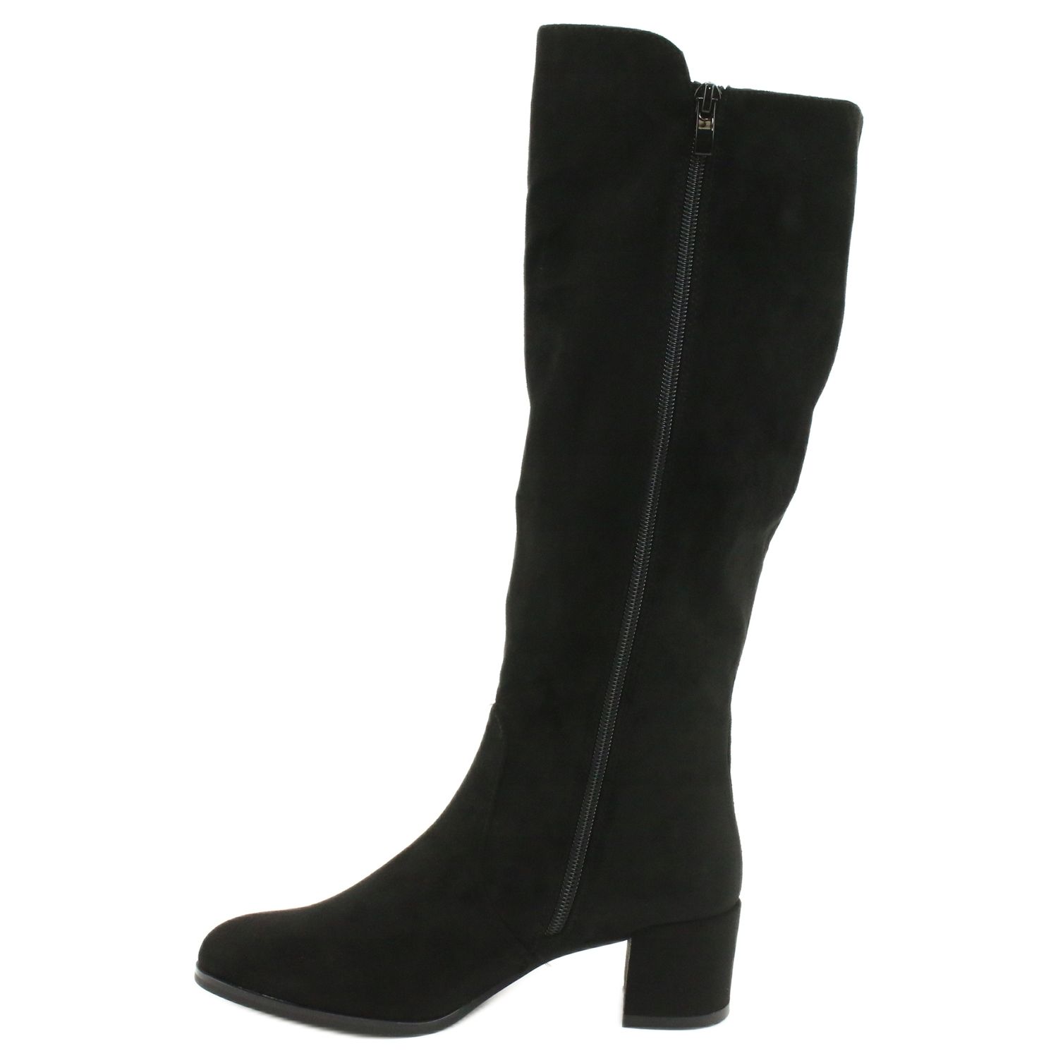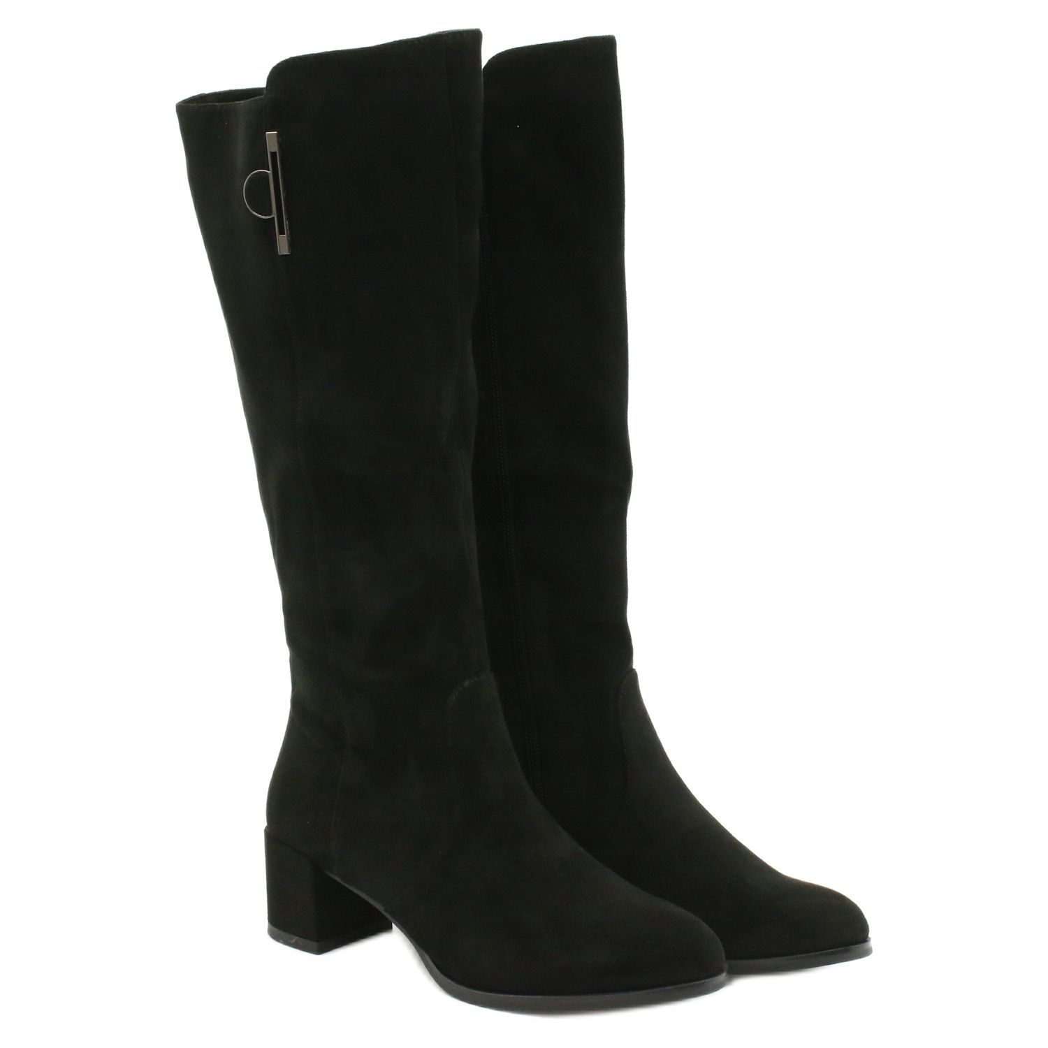 Entdecken Sie Eleganz und Stil mit den schwarzen Sergio Leone KZ277 Stiefeln. Dies ist die perfekte Wahl für jede modebewusste Frau, die die Kombination aus klassischem und modernem Stil schätzt. Die Stiefel sind aus hochwertigem ökologischem Wildleder gefertigt, was nicht nur für ein attraktives Aussehen, sondern auch für Langlebigkeit und Tragekomfort sorgt.