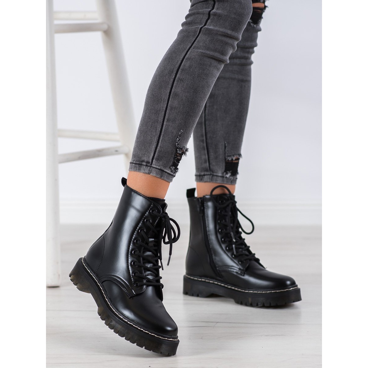 Schwarze SHELOVET Bovver-Stiefel sind ein universelles Garderobenelement, das sich problemlos mit verschiedenen Stilen kombinieren lässt. Egal, ob Sie spazieren gehen, zur Arbeit gehen oder sich mit Freunden treffen, sie werden großartig aussehen. Verpackt im Originalkarton des Herstellers sind sie auch eine tolle Geschenkidee für jeden Liebhaber einzigartiger Schuhe.