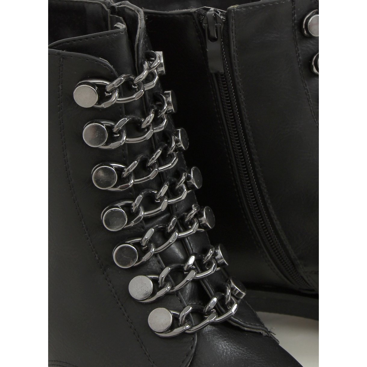 Schwarze Bovver-Stiefel TE1720-29 Black sind die perfekte Wahl für Frauen, die Wert auf einzigartigen Stil und Komfort legen. Diese vollnarbigen Damenschuhe zeichnen sich durch ein modernes Design aus, das rockigen Charakter mit alltagstauglicher Funktionalität verbindet. Anstelle einer klassischen Schnürung sind die Stiefel mit auffälligen Ketten verziert, die ihnen einen einzigartigen, auffälligen Look verleihen.