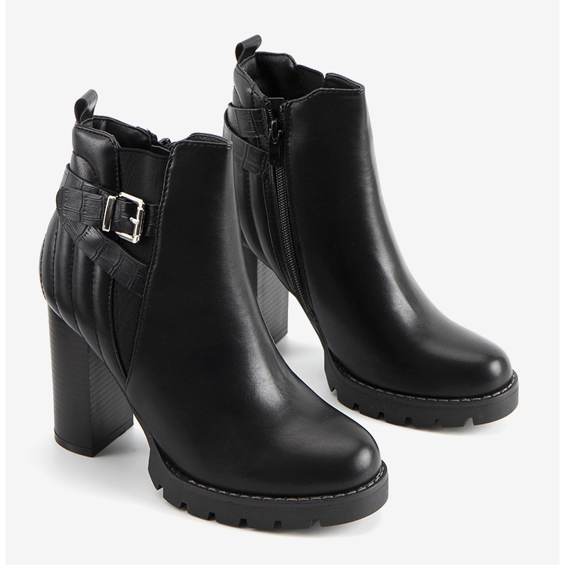 Verpassen Sie nicht die Gelegenheit, dieses modische Accessoire zu erwerben! Adriennes schwarze Stiefeletten mit hohen Absätzen sind die perfekte Wahl für jede Frau, die modisch aussehen und sich dabei wohlfühlen möchte. Schauen Sie sie sich noch heute an und fügen Sie sie Ihrer Sammlung hinzu!