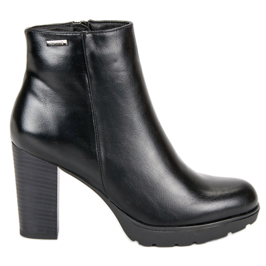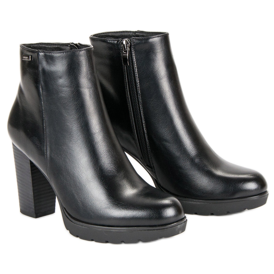 Durch den 9 cm hohen Pfostenabsatz gewinnen Sie eine optische Verlängerung der Silhouette und Stabilität. Schwarze Stiefeletten passen perfekt zu einer Vielzahl von Stilen – sowohl zu Hosen als auch zu Kleidern und Röcken, was sie zu einem vielseitigen Element jeder Garderobe macht.