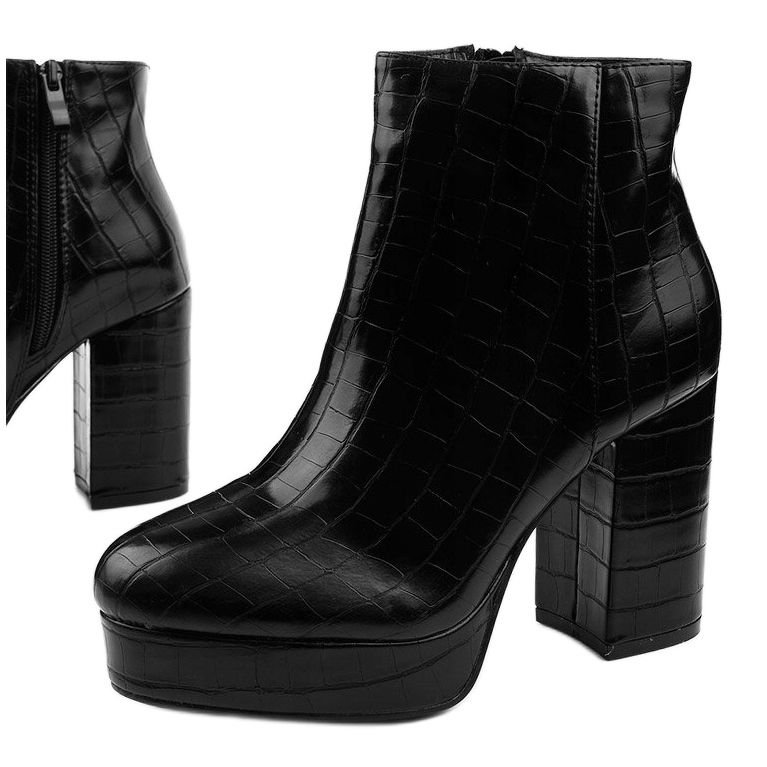 Usinaya-Stiefel sind einzigartig dank der dekorativen Struktur des Obermaterials, die Aufmerksamkeit erregt und jedem Styling Eleganz verleiht. Ein bequemer Blockabsatz von 9,5 cm macht sie perfekt für Alltagsausflüge und elegantere Anlässe. Ein seitlicher Reißverschluss ermöglicht ein einfaches An- und Ausziehen der Schuhe.
