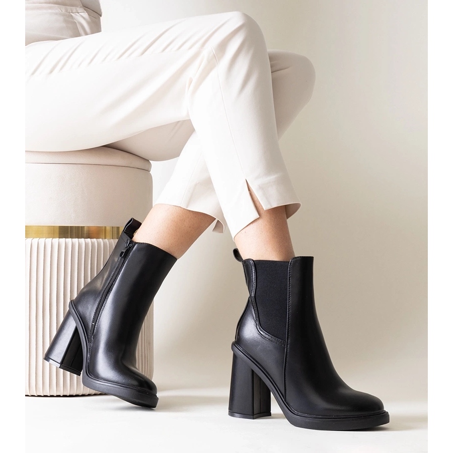 Die Fersenhöhe von 9 cm bedeutet, dass die Stiefel nicht nur die Beine wunderschön verlängern, sondern dank des stabilen Pfostens auch angenehm zu tragen sind. Sie bestehen aus hochwertigem ökologischem Leder und garantieren die Haltbarkeit und einfache Pflege. Das Erwärmen des Innenraums kümmert sich auch an kühleren Tagen um den thermischen Komfort, und die runde Nase gibt ihnen Universalität.