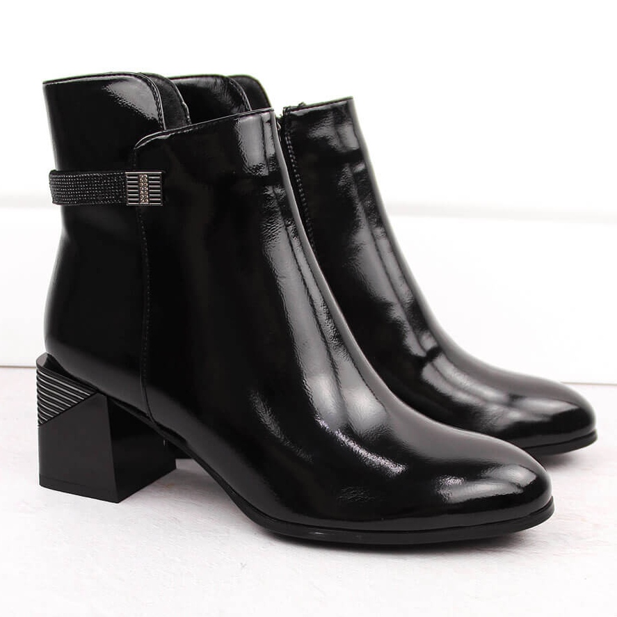 Details: Schwarze Stiefeletten aus Lackleder mit dekorativem Absatz D&A S.Barski Premium Collection MR880-140
