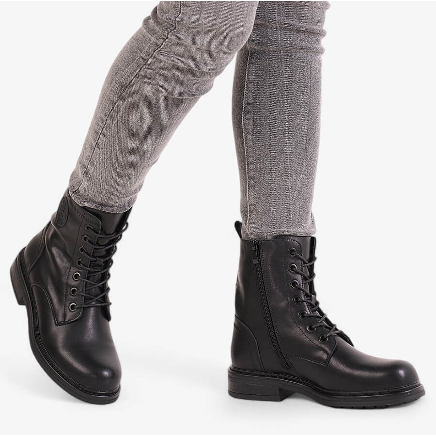 Diese Stiefel werden die Liebhaber der neuesten Trends sicherlich begeistern. Die Details mit Reißverschluss und Schnüre hinzufügen nicht nur Charakter, sondern erleichtern auch das Anlegen und Entfernen. Sie können jeden Tag getragen werden, um zu arbeiten, mit Freunden einzukaufen oder zu treffen.