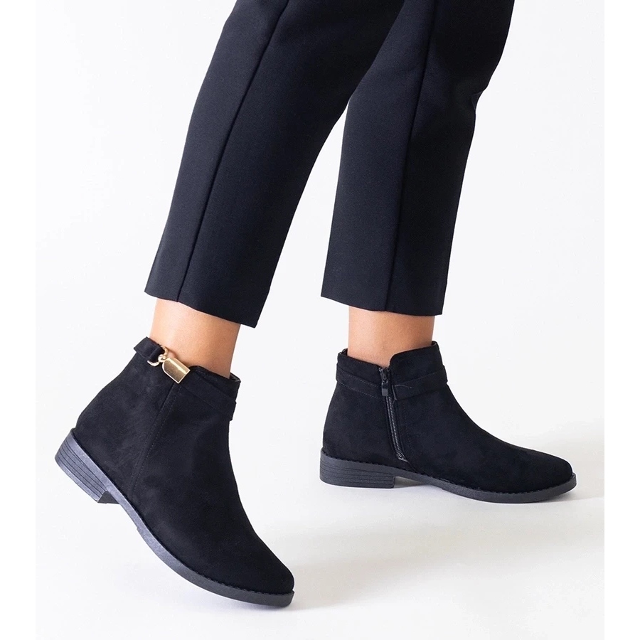 Details: D/CEO Schwarze Stiefeletten mit goldenen Casetra-Öko-Wildledereinsätzen