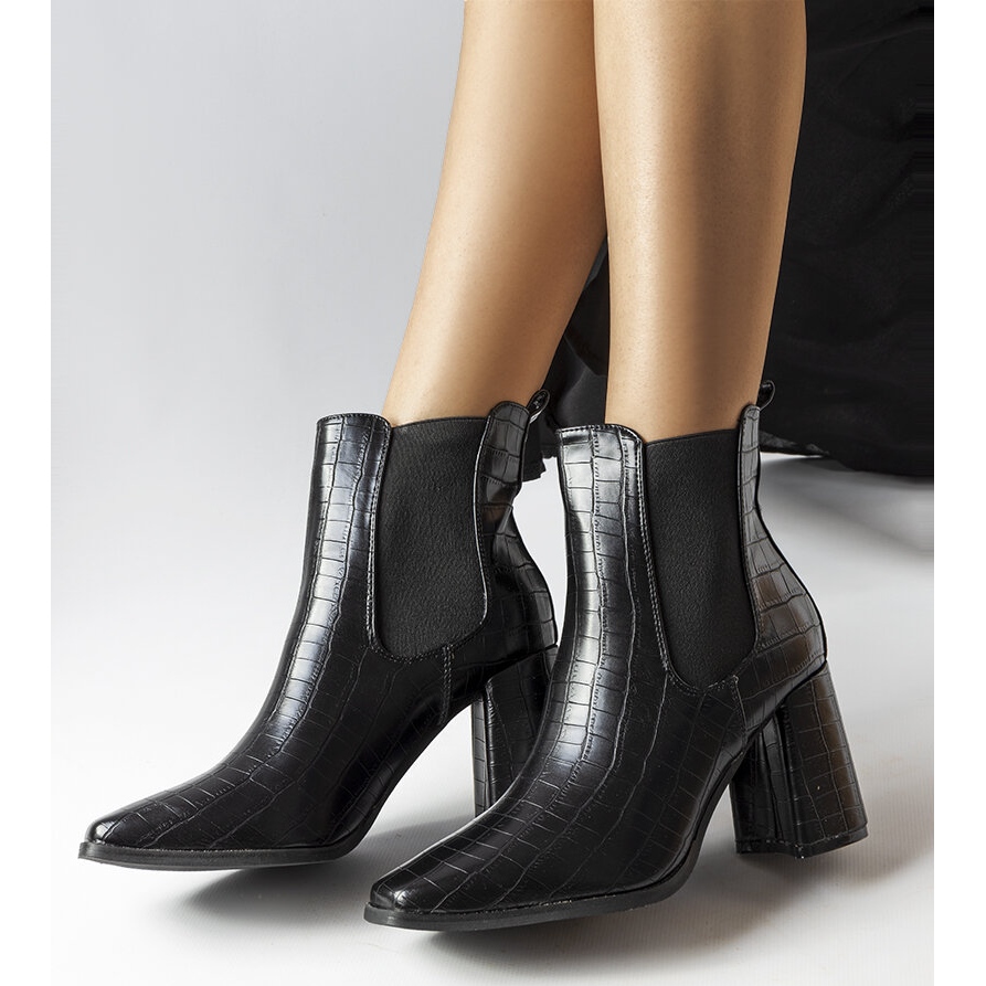Inna marka Schwarze Stiefeletten mit Krokodillederimitat von Weigall