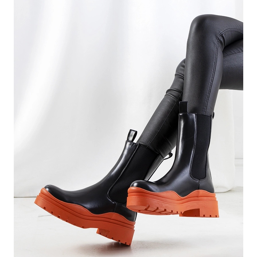 Inna marka Schwarze Stiefeletten mit orangefarbener Nester-Sohle
