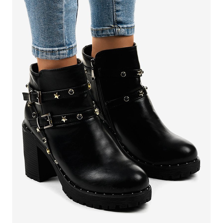 Inna marka Schwarze Stiefeletten mit Sternen D37-9
