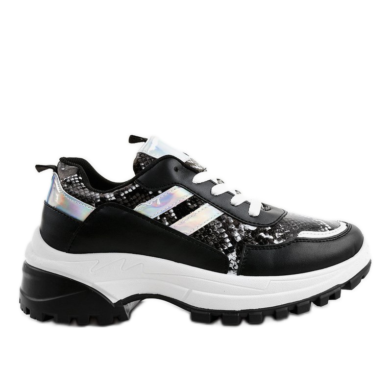 Entdecken Sie Eleganz und Komfort in den stilvollen schwarzen Sportschuhen 690051. Diese außergewöhnlichen Damenschuhe sind aus hochwertigem lederähnlichem Material gefertigt, das Schlangenhaut effektvoll imitiert und ihnen einen einzigartigen Charakter verleiht. Sie eignen sich perfekt für den täglichen Gebrauch und eignen sich sowohl zum Entspannen in der Stadt als auch bei sportlichen Aktivitäten.