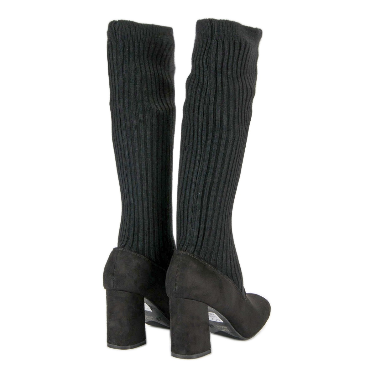 Dabei handelt es sich um einzigartige Stiefel der Marke Seastar, die ein Muss für jede mutige Frau sind, die Wert auf Originalität und Stil legt. Diese taillierten schwarzen Stiefel zeichnen sich durch einen hohen Absatz von 8,5 cm und ein Obermaterial aus einem Material aus, das kniehohe Socken imitiert, was ihnen einen einzigartigen Charakter als Herbst-Winter-Schuhwerk verleiht.