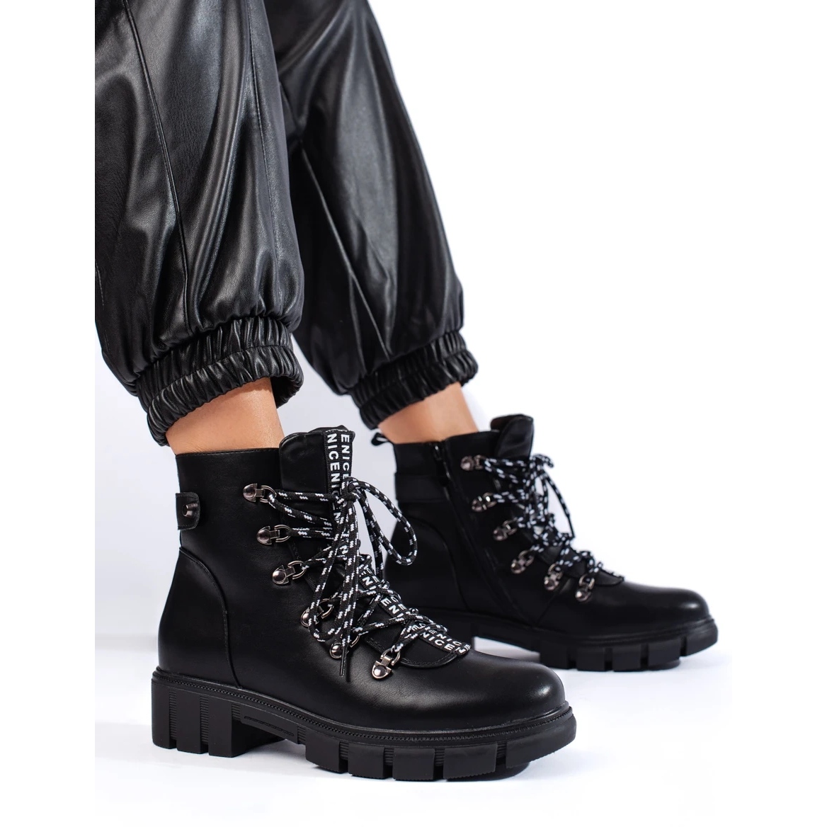 Elegante, schwarze Vinceza -Arbeiter kombinieren jeden Tag den städtischen Stil mit Komfort. Sie bestehen aus Bio -Leder, Isolierung und einer angenehmen "Schuheklinge" -Innensohle und arbeiten an kühleren Tagen. Eine stabile Sohle mit einem Profil und einem praktischen Reißverschluss und Schnürung garantieren Komfort und einen bestimmten Schritt.