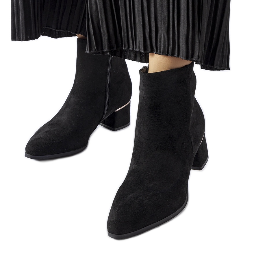 Klassische und moderne Tayyib-Stiefel sind ein Muss im Herbst- und Wintergarderobe. Sie bestehen aus ökologischem Leder in einem Wildleder -Finish mit zeitlosen Schwarz, mischen sie sich gut mit Jeans und einem Kleid oder einem Rock. Die spitze Nase gibt ihnen einen zeitgenössischen Charakter, und die niedrige Höhe des Pfostens (5 cm) sorgt für Stabilität und Komfort im Laufe des Tages.