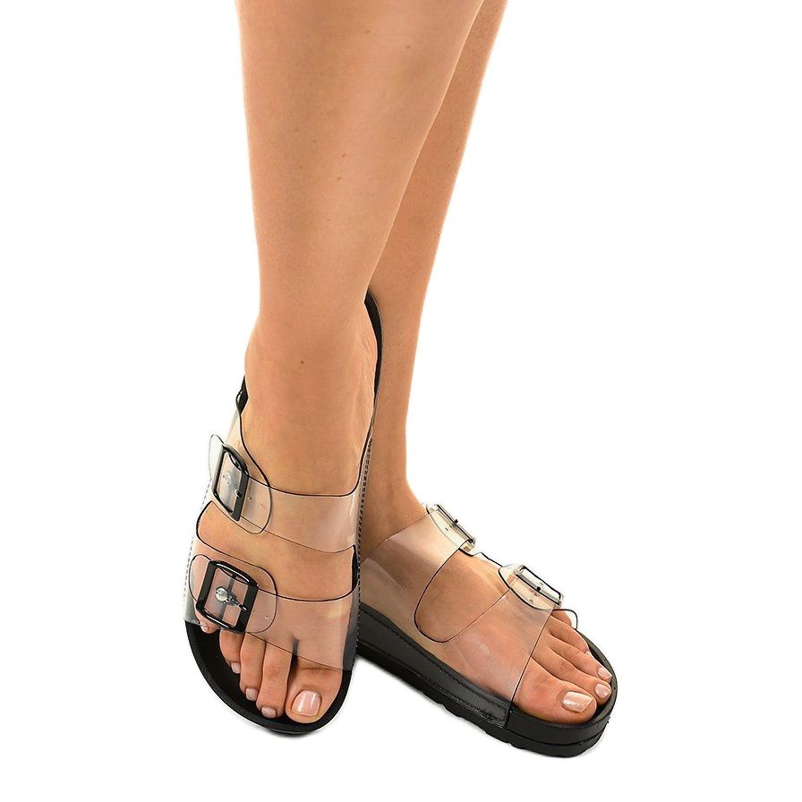 Details: Schwarze transparente Hausschuhe mit SE-9605-Schnalle mehrfarbig