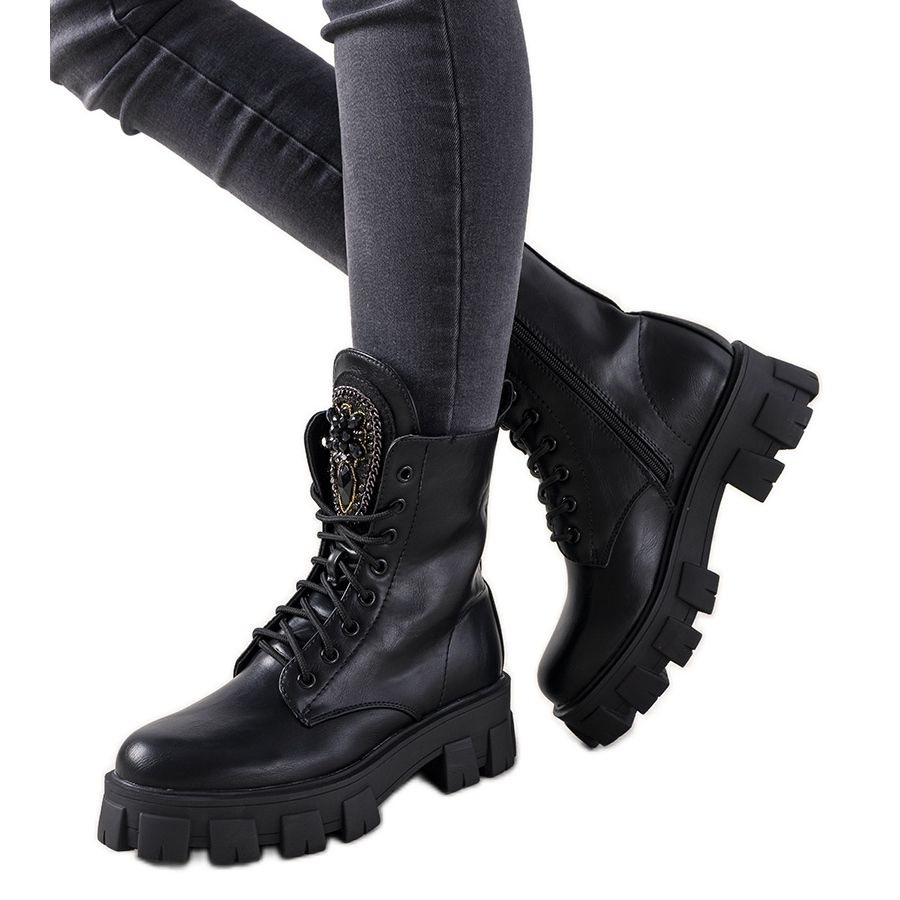 Schwarze Trapperschuhe von Romaine mit dekorativer Zunge sind die perfekte Wahl für jede modebewusste Frau, die Komfort mit einem einzigartigen Stil verbinden möchte. Diese aus hochwertigem Faux-Wildleder gefertigten Schuhe vereinen Eleganz mit modernem Design. Die reich verzierte Zierzunge mit wunderschönen schwarzen Steinen zieht die Blicke auf sich und verleiht dem Schuhwerk einen einzigartigen Charakter.