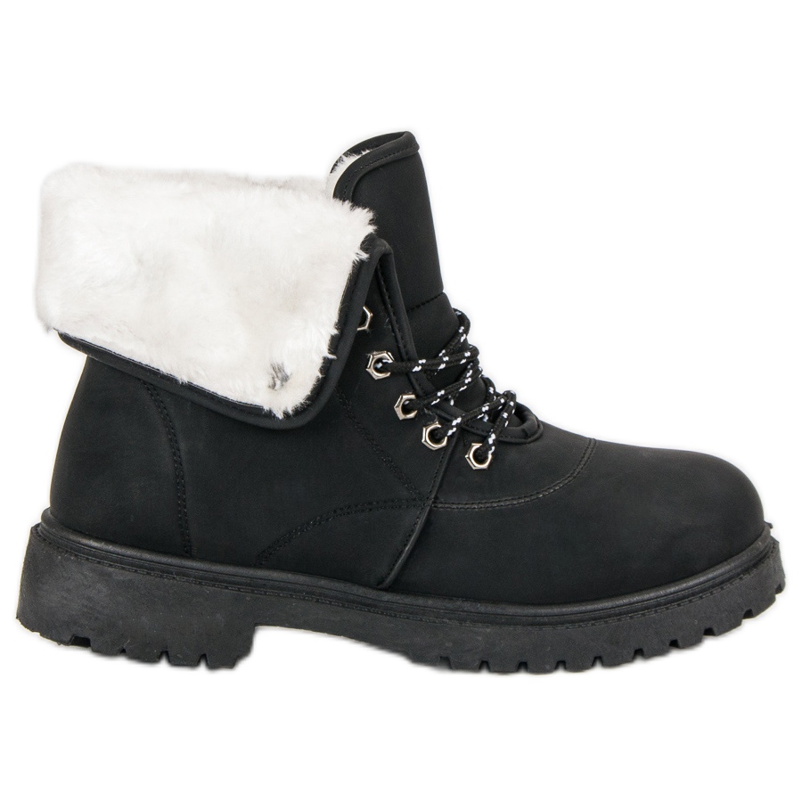 Wir präsentieren schwarze Pelzstiefel, die perfekt in Ihre Herbst-Winter-Garderobe passen. Diese Freizeitschuhe mit 3,5 cm Absatz und 1,5 cm Plateau sind eine perfekte Kombination aus Stil und Komfort. Die aus hochwertigem Faux-Wildleder in elegantem Schwarz gefertigten Sneaker zeichnen sich durch ein interessant geschnittenes Obermaterial mit weißem Fell aus, das ihnen Charme verleiht.