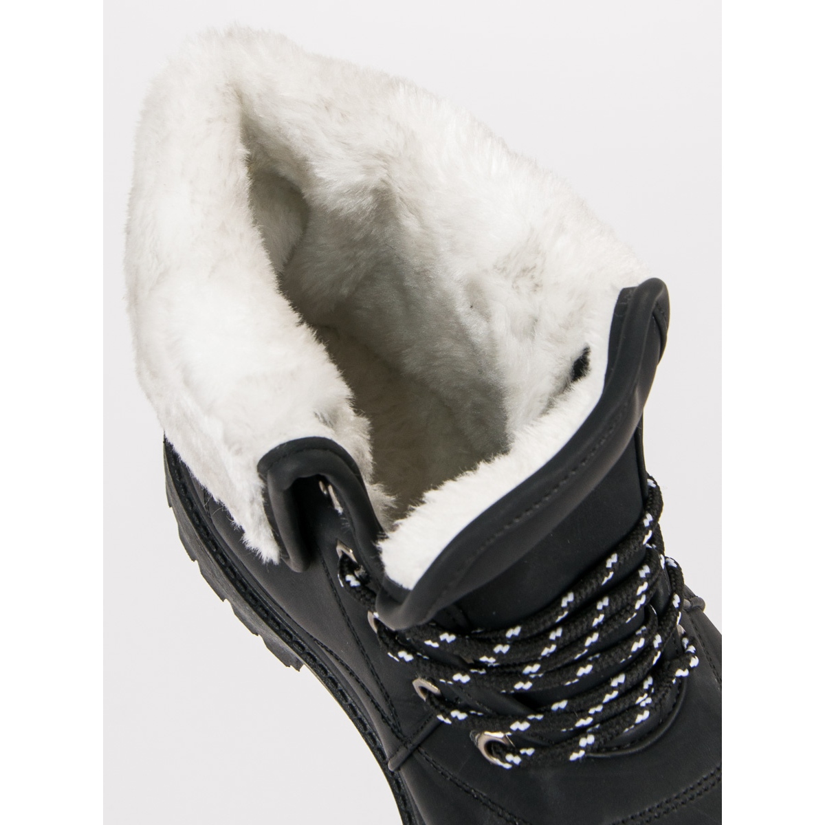 Dank der Isolierung und des Felleinsatzes sorgen diese Schuhe für die richtige Temperatur an kälteren Tagen und ihre dicke Profilsohle garantiert Stabilität und Tragekomfort. Der Schnürverschluss ermöglicht eine präzise Anpassung an den Fuß, was den Tragekomfort erhöht. Die runde Spitze und der hohe Schaft schützen den Knöchel effektiv vor Kälte.