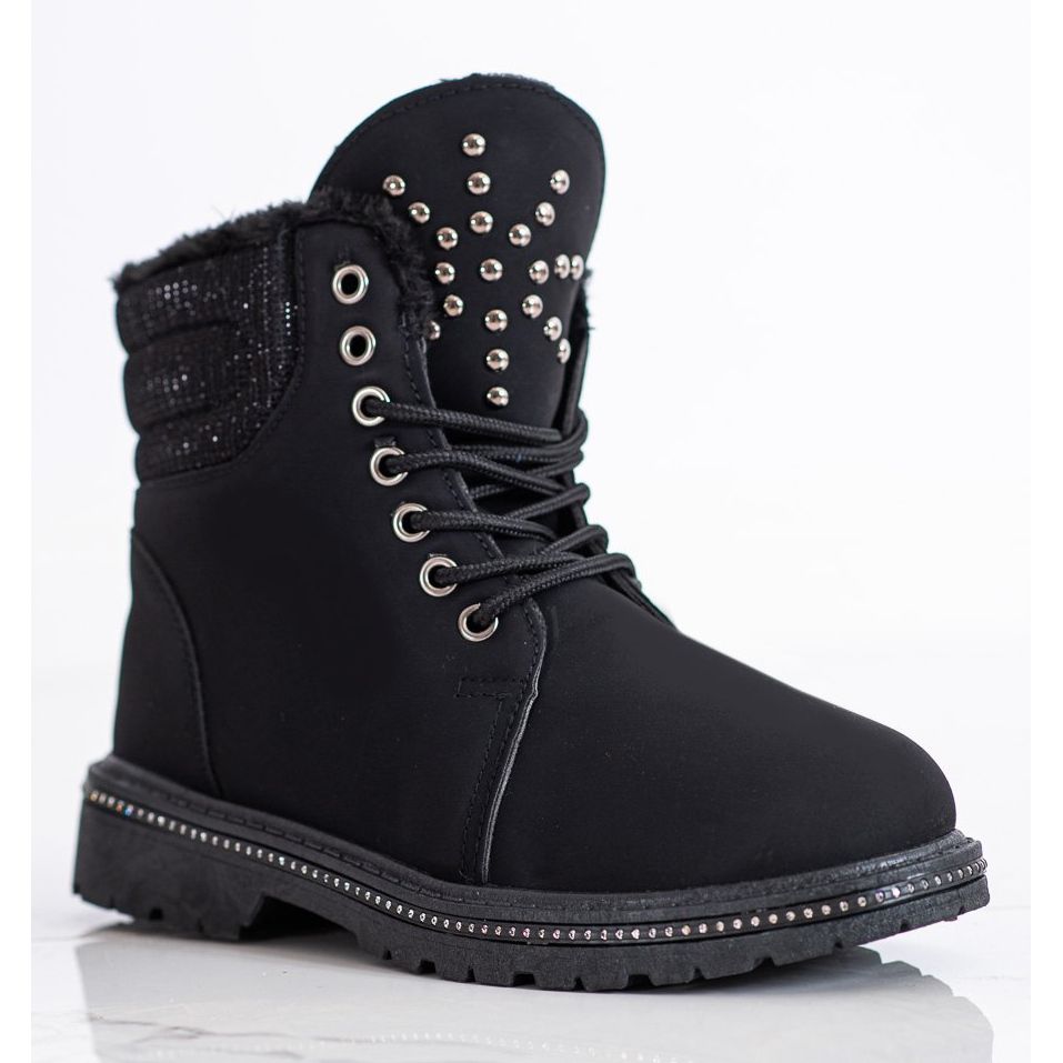 **SHELOVET Schwarze Stiefel mit Zirkonia**