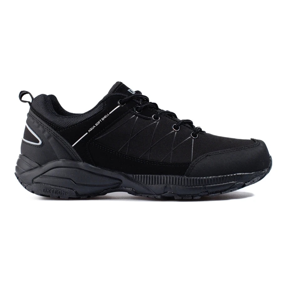 Schwarze männliche Trekkingschuhe DK - Langlebig, bequem und universell. Entworfen für Outdoor- und sportliche Aktivitäten, tägliche Nutzung. Die Kombination aus ökologischem Leder und haltbarer Textilmaterial garantiert die Haltbarkeit, und modernes Design lässt die Schuhe sowohl auf dem Weg als auch unter den städtischen Bedingungen gut aussehen.