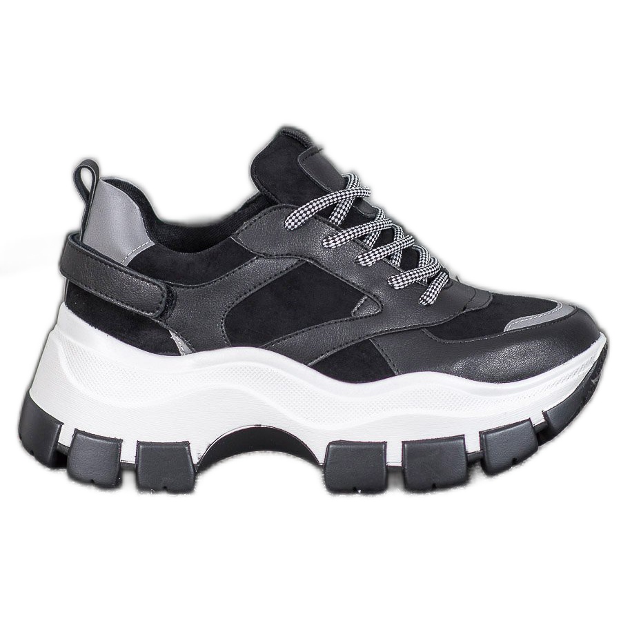 Details: Weide Schwarze Turnschuhe auf der Plattform