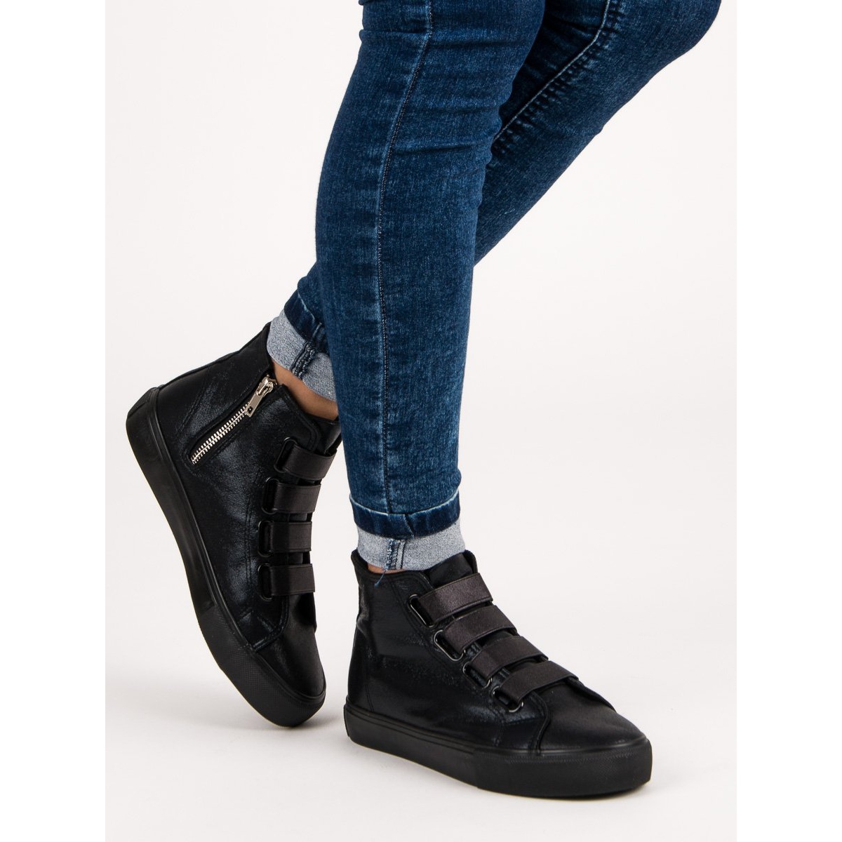 Egal, ob Sie einen Spaziergang durch die Stadt oder ein Treffen mit Freunden planen, schwarze Sneakers mit Gummizug von Buty Modne meistern jede Situation. Dies sind Schuhe, die in der Garderobe jeder Frau fehlen sollten, die Modetrends folgt. Entscheiden Sie sich für Komfort und Stil in einem – entscheiden Sie sich für diese einzigartigen Sneaker!