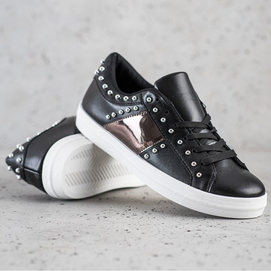 Wir präsentieren schwarze Sneakers mit Verzierungen von SHELOVET – die perfekte Wahl für Frauen, die Wert auf Komfort und einen modischen Look legen. Diese Sportschuhe eignen sich sowohl für den täglichen Gebrauch als auch für weniger formelle Anlässe.