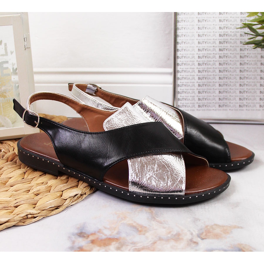 Jezzi Schwarze und silberne Jezzi-Sandalen für Damen silber-