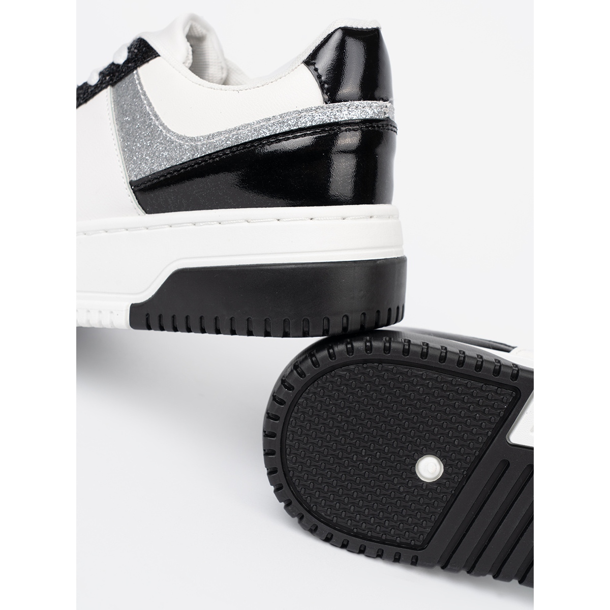 Details: Shelvt Schwarze und weiße Turnschuhe mit schimmernden silbernen Details
