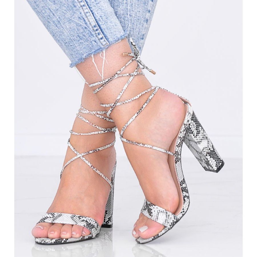 Inna marka Schwarze Veni Sandalen mit Schlangenhautbindung weiß