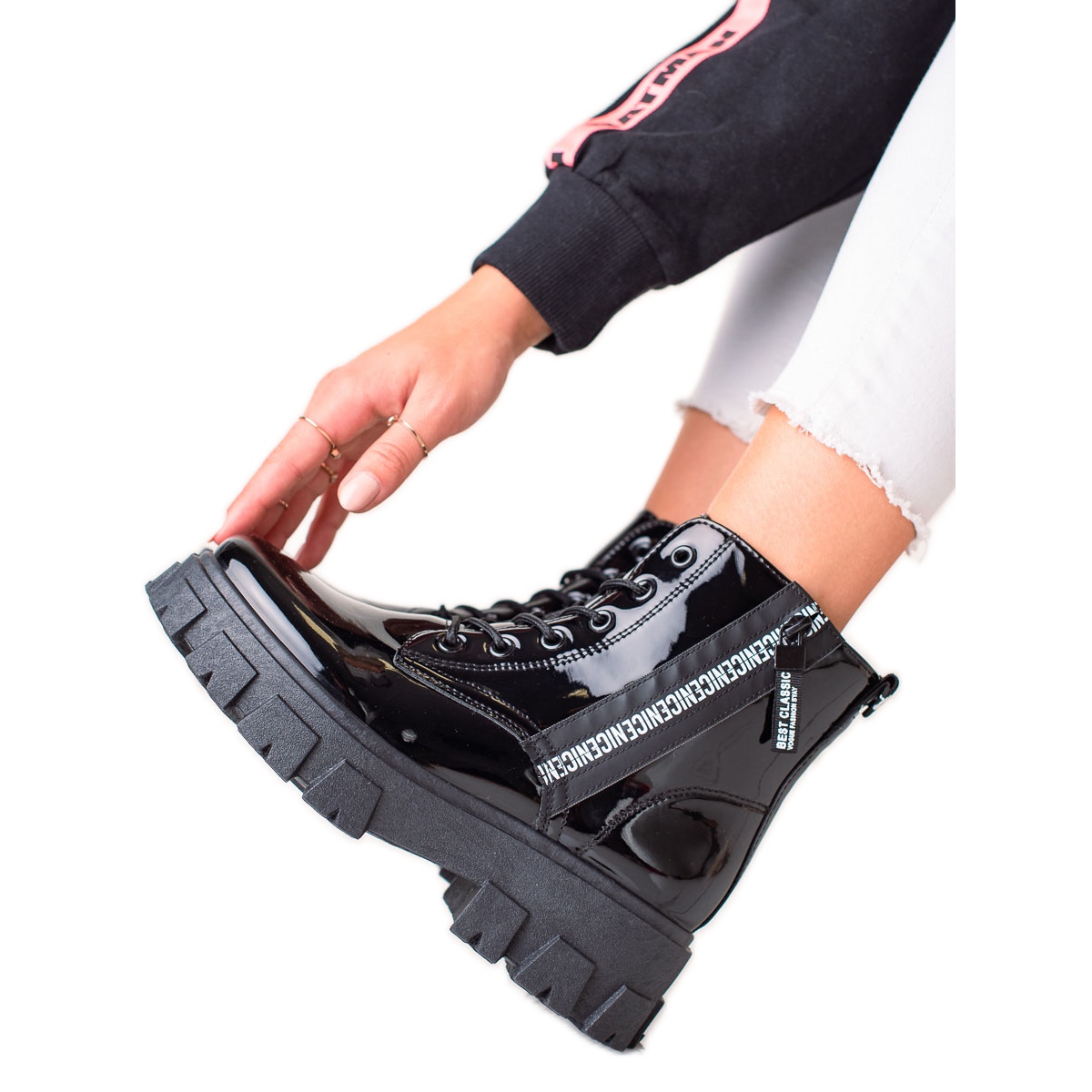 Unabhängig vom Anlass sind die Worker von TRENDI die perfekte Ergänzung zu vielen Stilrichtungen. Sie können sie sowohl mit Jeans als auch mit einem fließenden Kleid kombinieren und so einen lässigen und modischen Look kreieren. Sie sind in elegantem Schwarz erhältlich und passen perfekt zu verschiedenen Farbkombinationen.