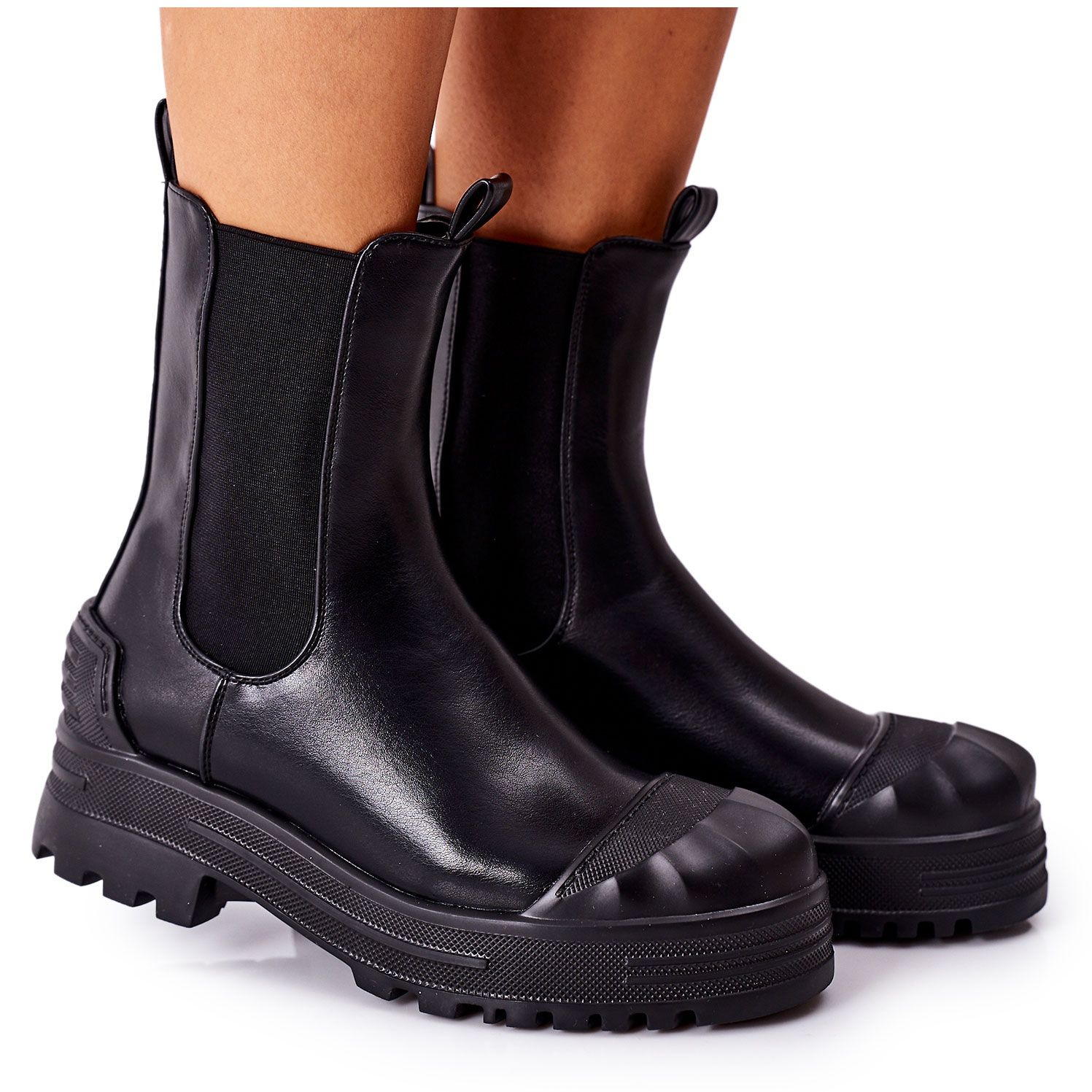 Klassische schwarze Händler aus ökologischem Leder, isoliert mit einer weichen Schuhedecke - perfekt für die Herbst/Wintersaison. Die Gleitstruktur sorgt für schnelles und bequemes Anziehen, und die subtile Plattform und die Ferse verleihen Stabilität und schnecken die Figur optisch.