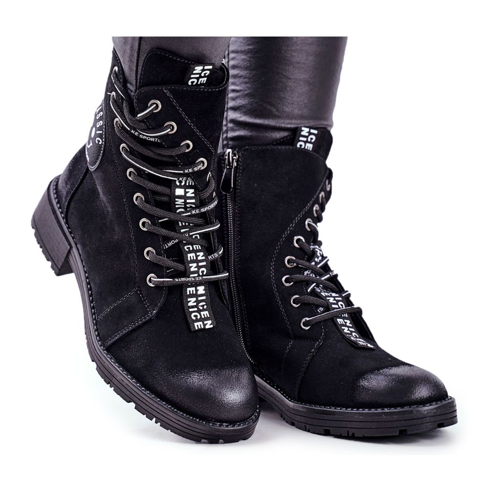 Die Stiefel haben eine runde Spitze und wurden mit Liebe zum Detail entworfen. Verziert mit einem schwarzen Streifen mit der Aufschrift „NICE“ und einer ungewöhnlichen Schnürung werden sie mit Sicherheit die Blicke auf sich ziehen und jedes Styling zum Hingucker machen. Ein flacher 4 cm hoher Absatz sorgt für angenehmen Tragekomfort den ganzen Tag und die Schafthöhe von 14 cm sorgt für Charakter und Attraktivität.