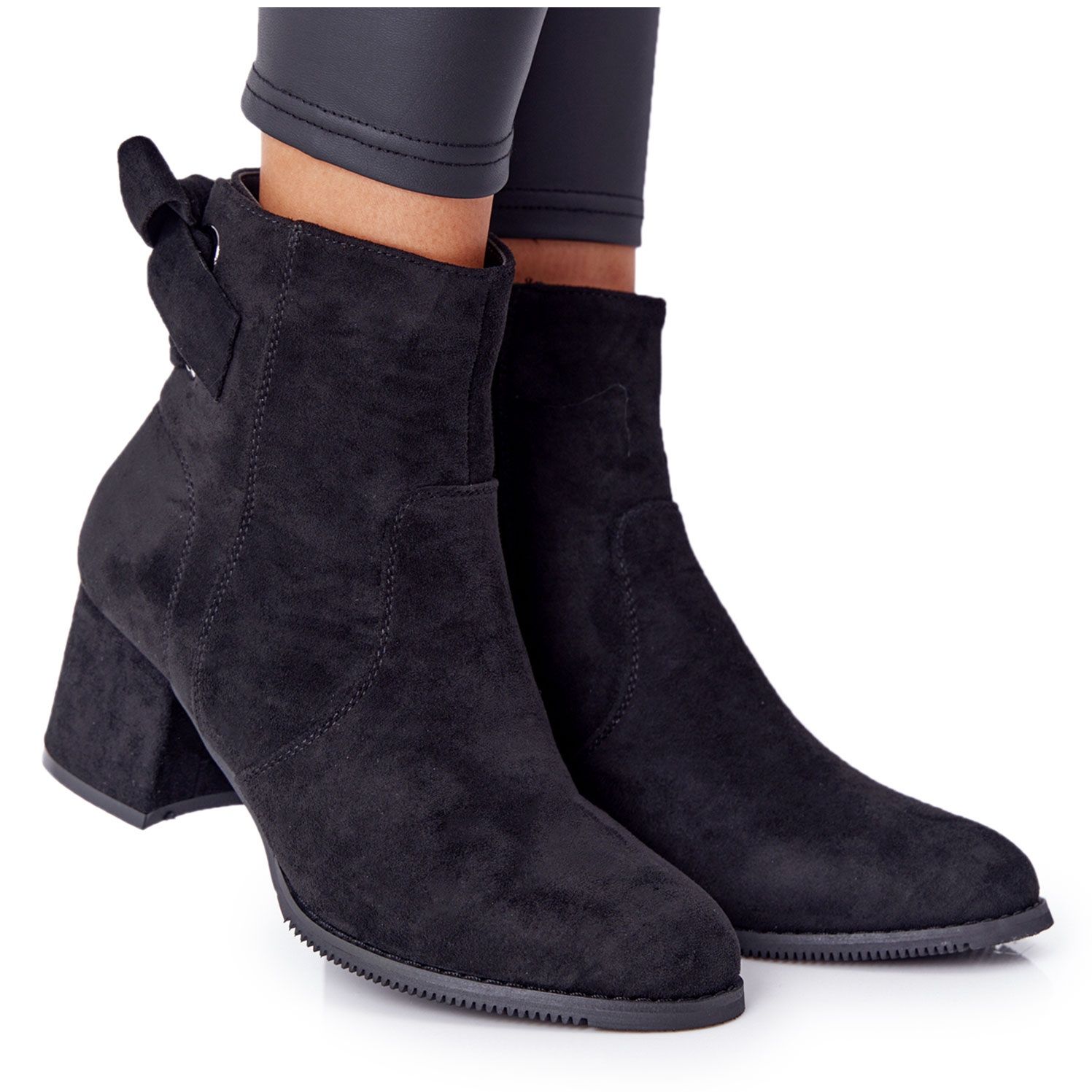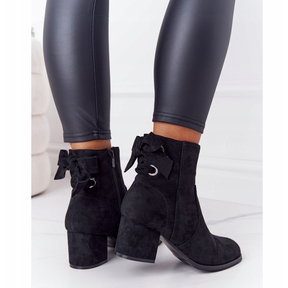 Die schwarze Farbe der Stiefel passt perfekt zu den neuesten Trends und die runde Spitze und die dekorative Schleife verleihen ihnen einen einzigartigen Charakter. Der 6,5 cm hohe Blockabsatz garantiert Stabilität und Tragekomfort, perfekt für lange Spaziergänge oder Stadtausflüge. Mit einem Reißverschluss ist dieses Modell äußerst praktisch und passt sich durch die Schaftweite von 25 cm und die Weite G perfekt dem Fuß an.