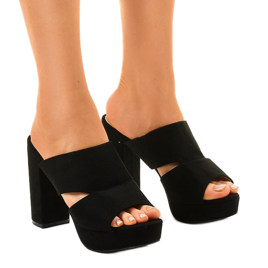Schwarze Wildleder-Pantoletten 9R55 mit hohen Absätzen sind die perfekte Wahl für Frauen, die mit ihrem Stil auffallen möchten. Diese eleganten und zugleich lässigen Sandalen verleihen jedem Outfit Charakter und passen durch ihre ausdrucksstarke Farbe zu nahezu allem.