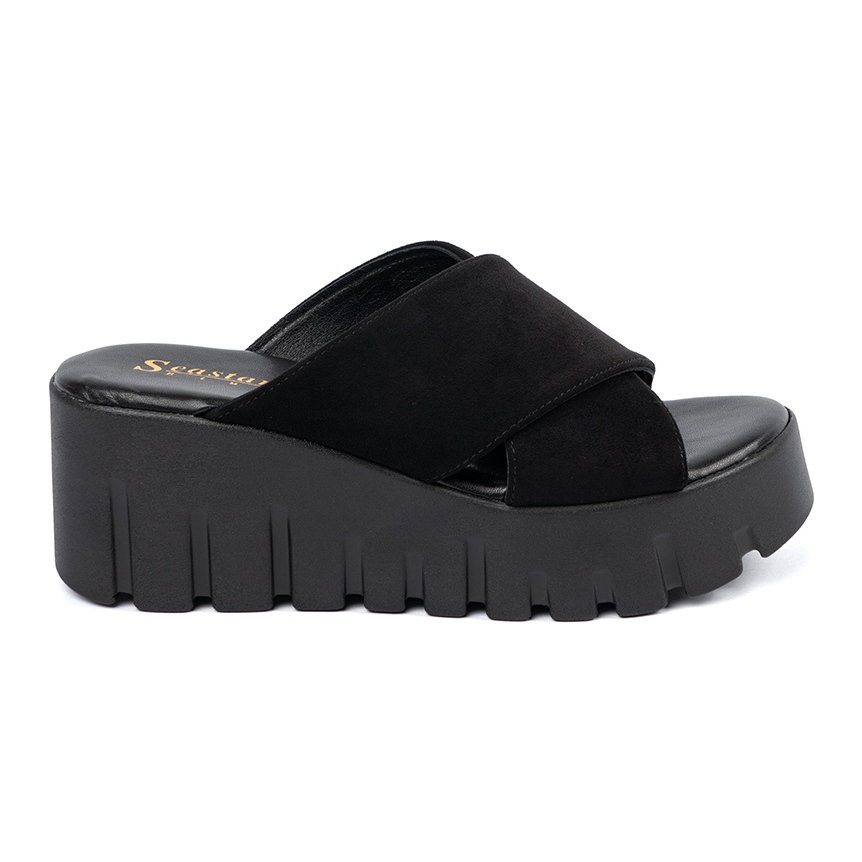 Details: Seastar Schwarze Wildleder-Keilsandalen für Damen