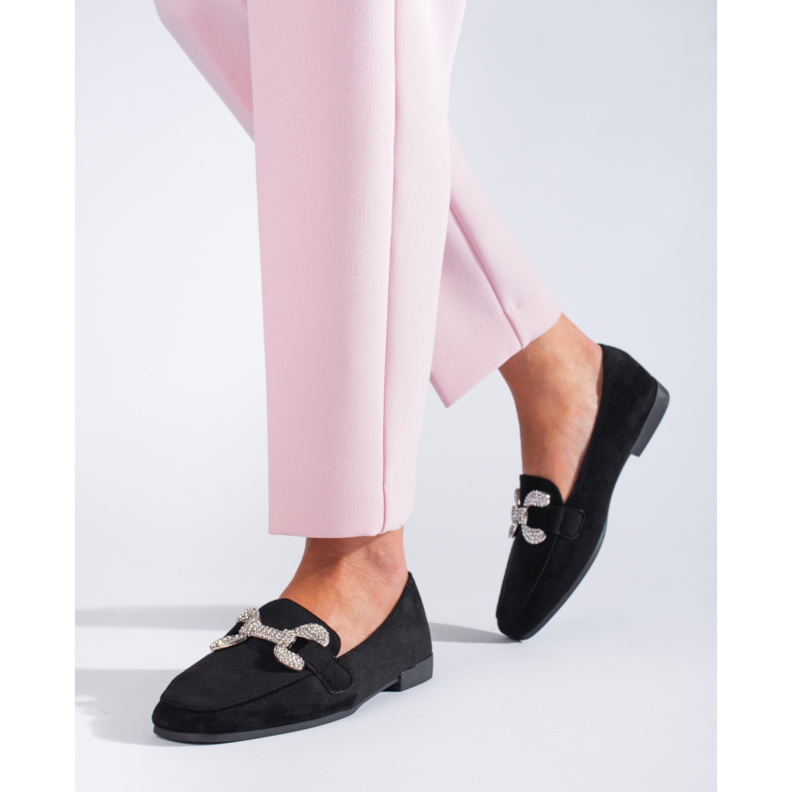 Schwarze Wildleder-Loafer mit Schnalle von Shelovet sind die perfekte Wahl für Frauen, die stilvolles und bequemes Alltagsschuhwerk suchen. Diese eleganten Schuhe sind aus ökologischem Wildleder gefertigt, wodurch sie äußerst attraktiv und gleichzeitig umweltfreundlich aussehen.