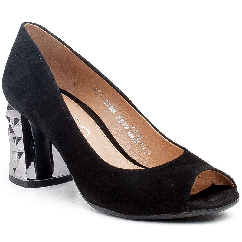 Details: Marco Shoes Schwarze Wildleder-Pumps mit 3D-Metallic-Absatz