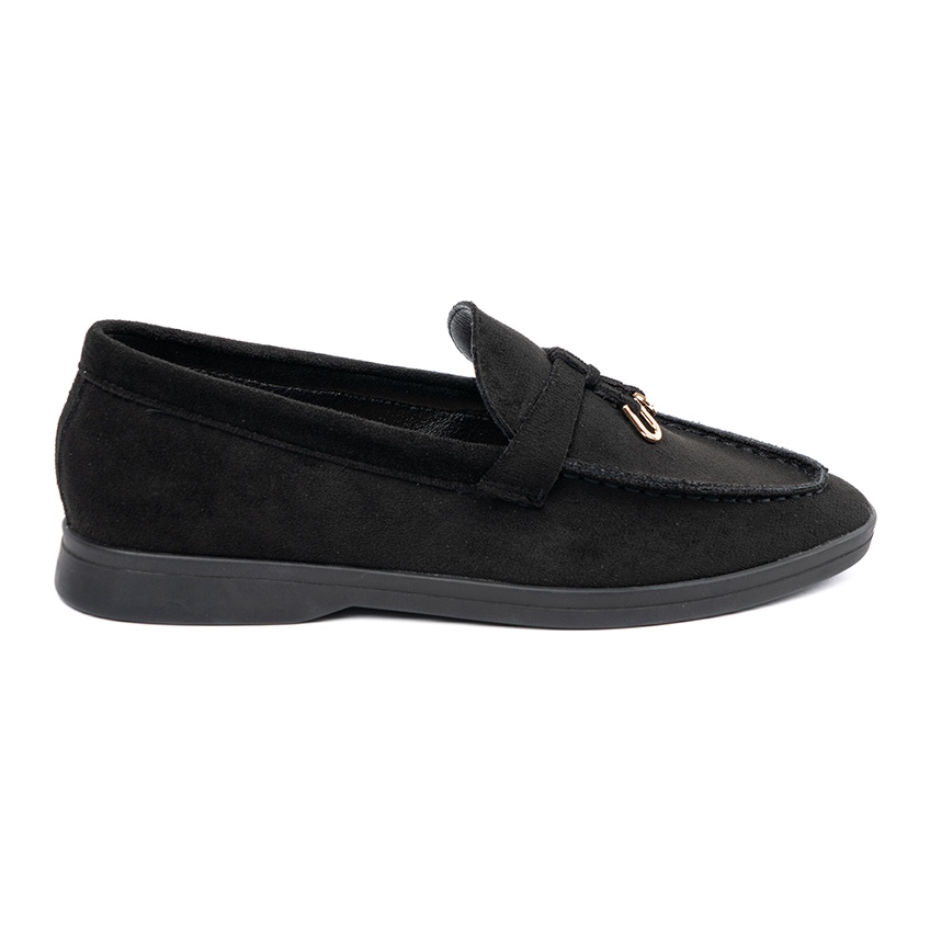 Details: Schwarze Wildledermokassins für Damen