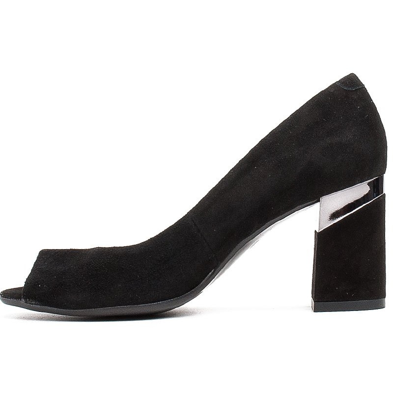 Schwarze Wildlederpumps mit metallisiertem Absatz von Marco Shoes sind eine Kombination aus Eleganz und modernem Stil, die perfekt den Geschmack anspruchsvoller Frauen treffen wird, die sowohl Wert auf hochwertige Lederprodukte als auch auf einzigartiges Design legen. Dies ist die perfekte Wahl für Frauen, die ihrem Styling etwas Luxus und einen einzigartigen Charakter verleihen möchten.