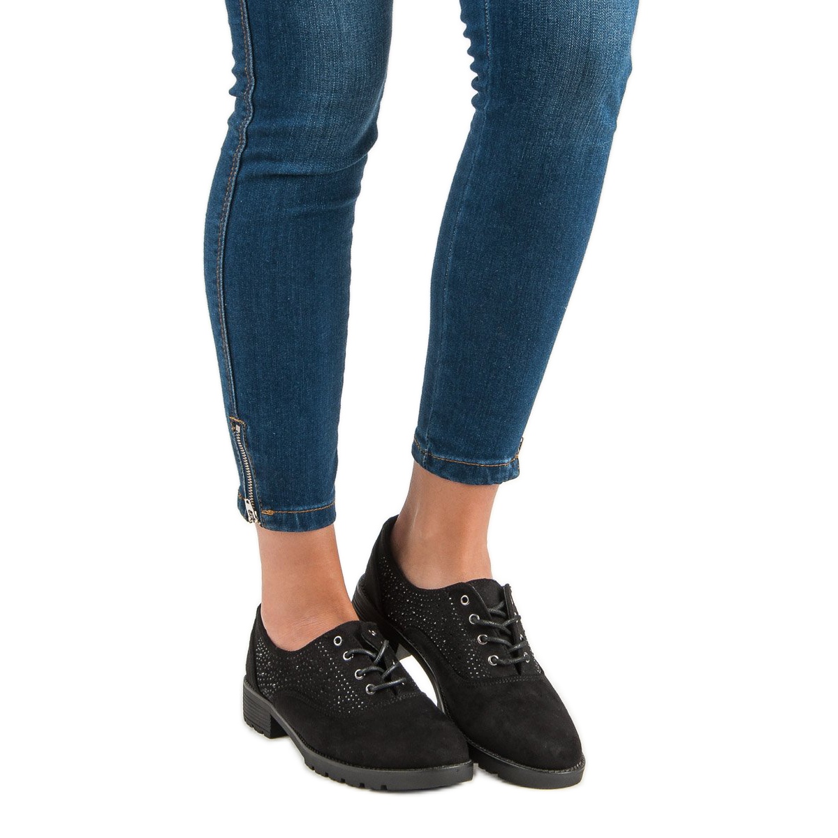 Schwarze Wildlederschuhe der Marke Butymodne sind ein Muss in der Garderobe jeder Frau. Durch ihr minimalistisches und dennoch elegantes Design lassen sie sich leicht mit einer Vielzahl von Stilen kombinieren. Die Strasssteine auf dem Obermaterial verleihen ihnen Charakter und die runde Spitze macht sie besonders bequem.