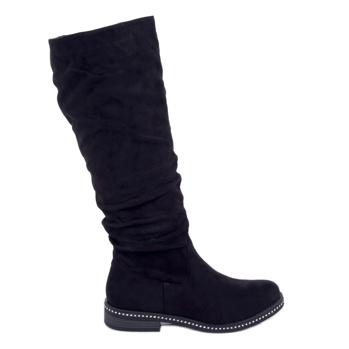 Inna marka Schwarze Wildlederstiefel 1268J16 Schwarz