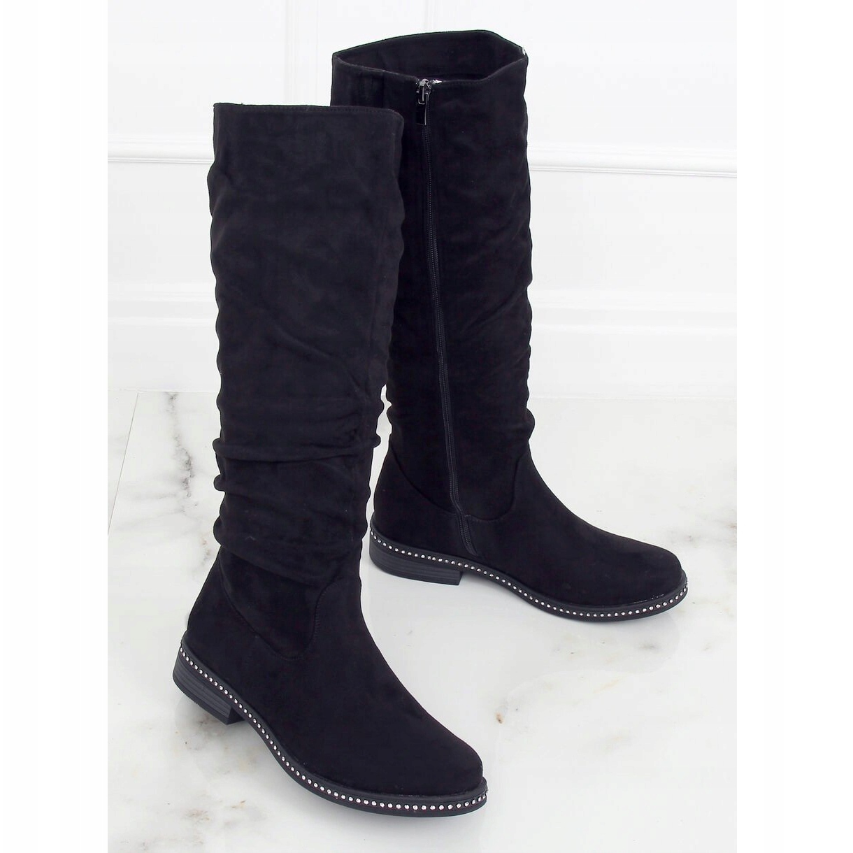 Schwarze Wildleder-Stiefeletten sind ein Klassiker, der sich perfekt für den täglichen Gebrauch eignet – perfekt zu Jeans, Leggings und Kleidern. Der kniehohe Schaft und der 3 cm flache Absatz garantieren Tragekomfort, die runde Spitze sorgt für dezente Raffinesse. Darüber hinaus sorgen dekorative Strasssteine in Form von Steinen dafür, dass diese Schuhe die Aufmerksamkeit auf sich ziehen und jedes Styling bereichern.